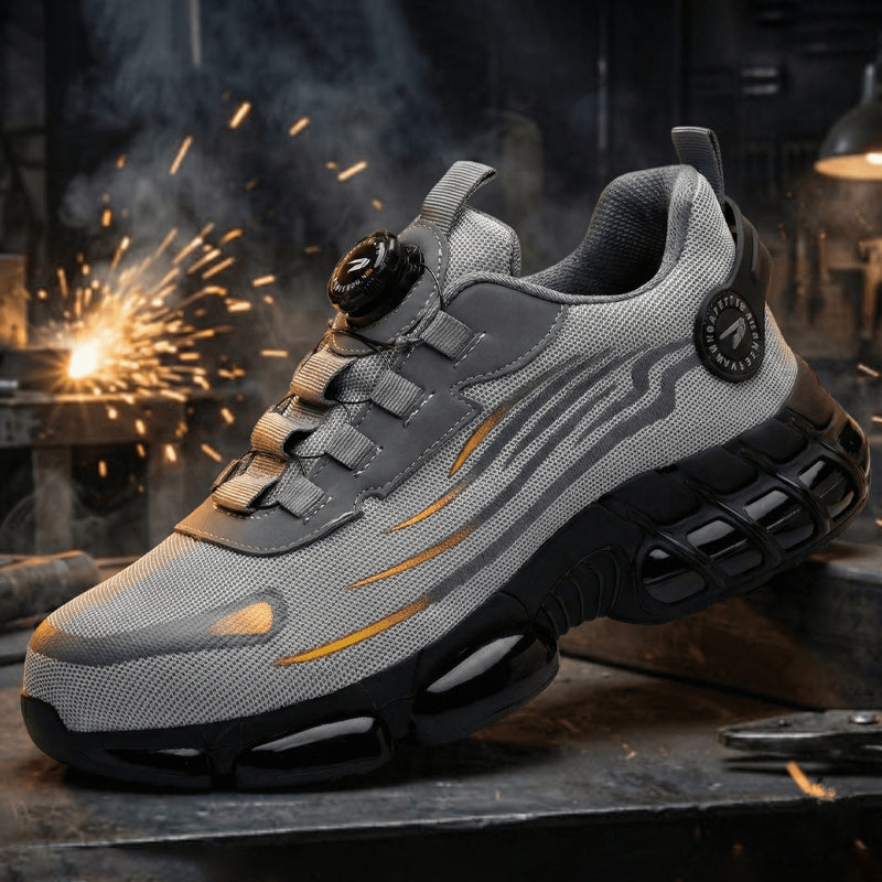 Atmungsaktive Sicherheitsschuhe mit einer leichten Mittelsohle schützen Ihre Füße vor spitzen Gegenständen wie Nägeln und Stahlstangen.